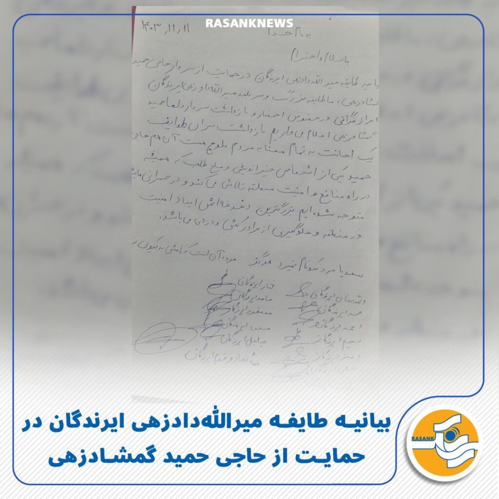 در پایان این بیانیه که به امضای شماری از افراد طایفه میراللهدادزهی هشدار داده است که در صورت عدم تمایل به ایجاد تنش، مقامات باید هرچه سریعتر نسبت به آزادی حاجی حمید گمشادزهی اقدام کنند.