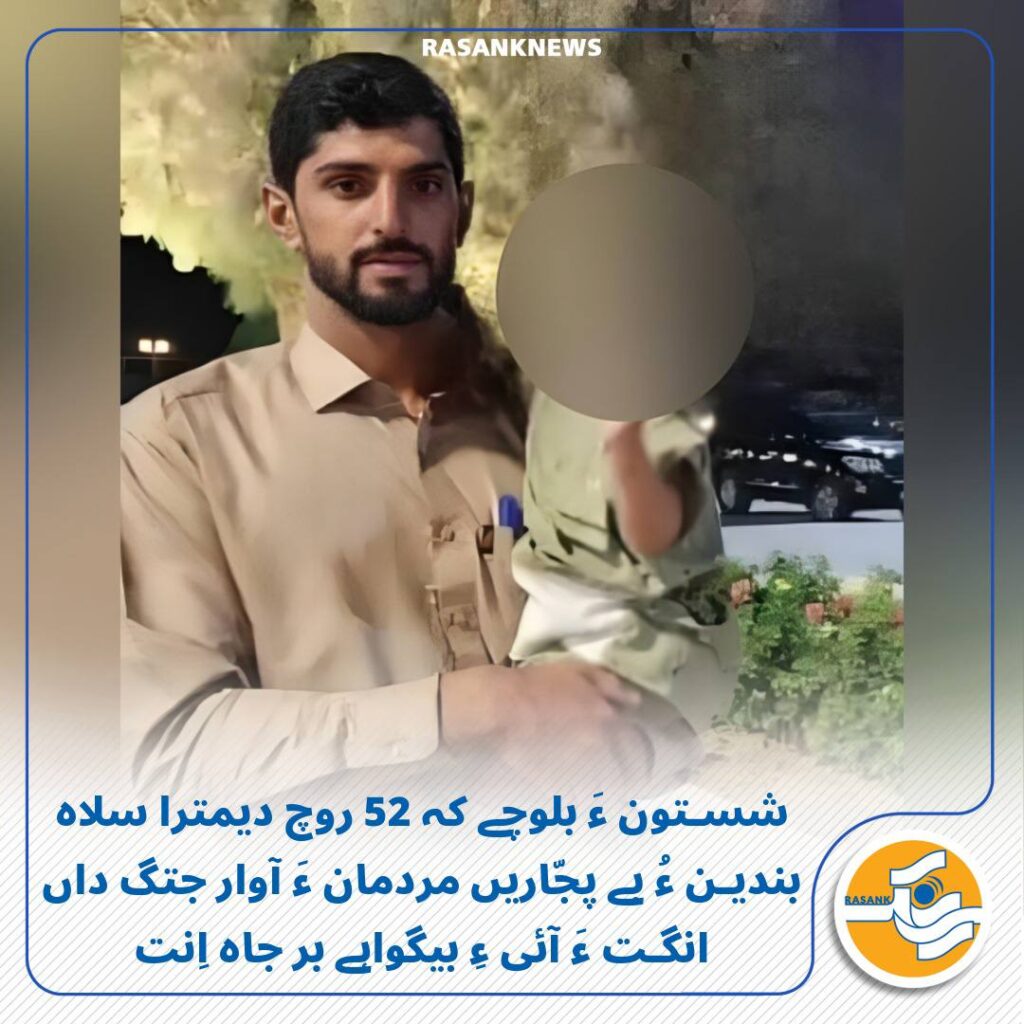 رَسانک نیوز/ مروچی شمبے 29 شہریور ماہ 1404 ءَ، شستونے زنگیان دمگ ءَ بلوچے کہ تاریک 8 مرداد ماہ ءَ سلاہ بندین ءُ بے پجّاریں مردمان ءَ آوار جتگ 52 روچ ءَ پد آئی ءِ ھالے سرپدئے نیست اِنت۔ لوگے مردم گوں امنیتی ادارہ آنے بے پرواھی ءَ پہ آئی ءِ ھالے دس کپگ ءَ سکّ ءَ دل پریشان اَنت.