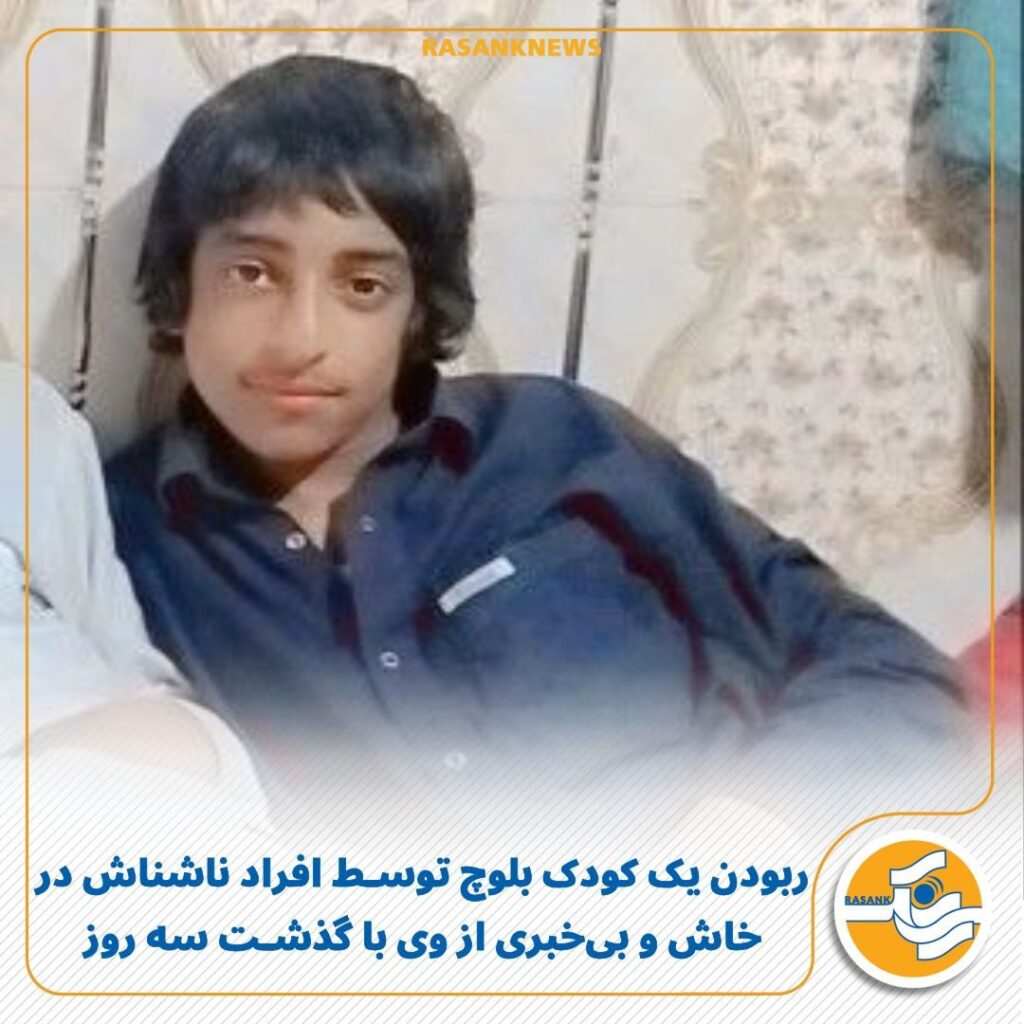 به گزارش رسانک، روز جمعه ۱۱ مهر ماه ۱۴۰۴، یک کودک بلوچ بهنام «احسان صوریزهی» ۱۲ ساله و فرزند بابل، در حالیکه با دوچرخه خود در خیابان آزادی شهر خاش و حوالی جمعه بازار مشغول بازی بود، توسط سرنشینان یک خودروی پژو پارس ربوده شده و با گذشت سه روز از این حادثه، همچنان هیچ اطلاعی از وضعیت و سرنوشت این کودک در دست نیست.