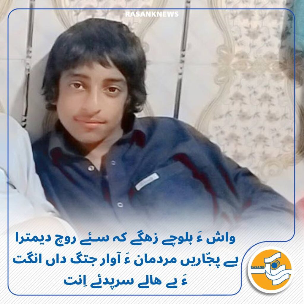 رَسانک نیوز/ جمے 11 مہرماہ 1404 ءَ، واش ءِ آزادی روڈ ءَ جمے بازار ءِ نزّیک ءَ، بلوچے زھگے کہ آئی ءِ پجّار «اھسان سوریزھی»، 12 سالگ، بابل ءِ چُک زانگ بوتگ پژو پارس گاڑی ئے بے پجّاریں نندوکان ءَ ھماں وھدا کہ وتی چرک ءَ سوار بوتگ آوار جتگ، سئے روچ ءَ پد داں انگت ءَ بے ھالے سرپدئے اِنت.