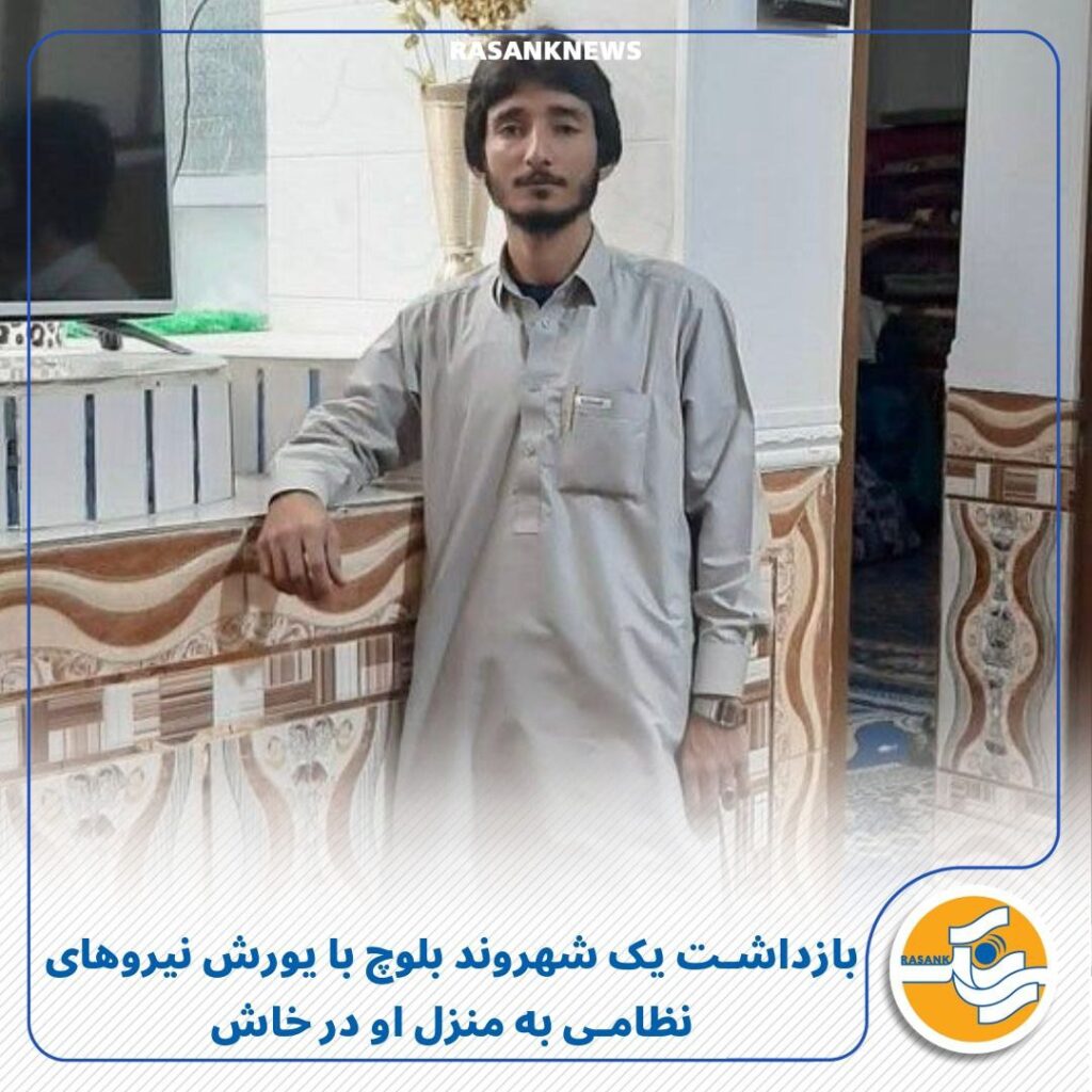 به گزارش رسانک، شامگاه گذشته ۲۰ مهر ماه ۱۴۰۴، نیروهای نظامی و لباسشخصی اداره آگاهی با یورش به منزل یکی از شهروندان بلوچ در خیابان جمهوری شهر خاش، او را بدون ارائه حکم قضایی بازداشت کرده و با خود بردهاند.