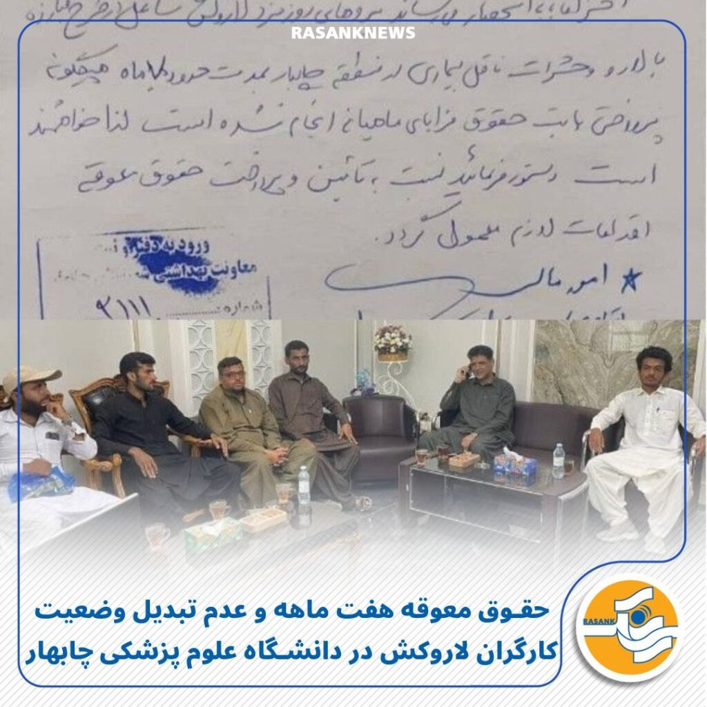به گزارش رسانک، امروز دوشنبه ۲۱ مهر ماه ۱۴۰۴، جمعی از کارگران بهداشتیار فعال در حوزه لاروکشی در شهرستان چابهار بدلیل عدم توجه مسئولان دانشگاه علوم پزشکی چابهار به درخواستهای مکرر آنها حدود یک هفته پیش در دفتر رئیس شورای شهر چابهار حضور یافتند تا پیگیری تبدیل وضعیت و دریافت حقوق معوقه هفت ماهه خود را انجام دهند. این کارگران که وظیفه جمعآوری و برداشت لارو حشرات در محیطهای آلوده و ناسالم را بر عهده دارند، با وجود دستور معاونت درمان دانشگاه علوم پزشکی، همچنان با بیتوجهی مسئولان دانشگاه و ممانعت پرداخت حقوق و جذب نیروهای بومی مواجه هستند.