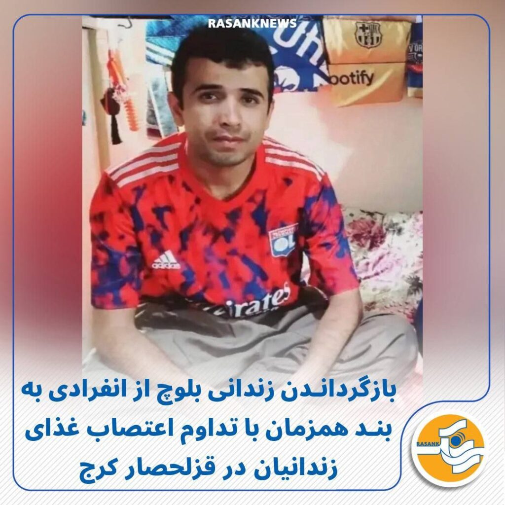 به گزارش رسانک، شامگاه سهشنبه ۲۲ مهر ماه ۱۴۰۴، با تداوم اعتصاب غذای جمعی از زندانیان زندان قزلحصار کرج در اعتراض به تلاش مسئولان برای اجرای حکم اعدام دستکم ۱۶ تن از همبندیهایشان، یک زندانی بلوچ به نام «احمد اسحاقزهی (مندیزهی)» حدوداً ۳۰ ساله، فرزند یوسف، متأهل و دارای دو فرزند و اهل زاهدان، از سلول انفرادی به بند بازگردانده شد. این اقدام در حالی انجام شده که زندانیان بامداد امروز ۲۳ مهر ماه برای سومین روز پیاپی در اعتصاب غذا بهسر میبرند و تاکنون حال چهار نفر از آنان نیز به دلیل ضعف جسمانی وخیم شده و به درمانگاه زندان منتقل شدهاند.