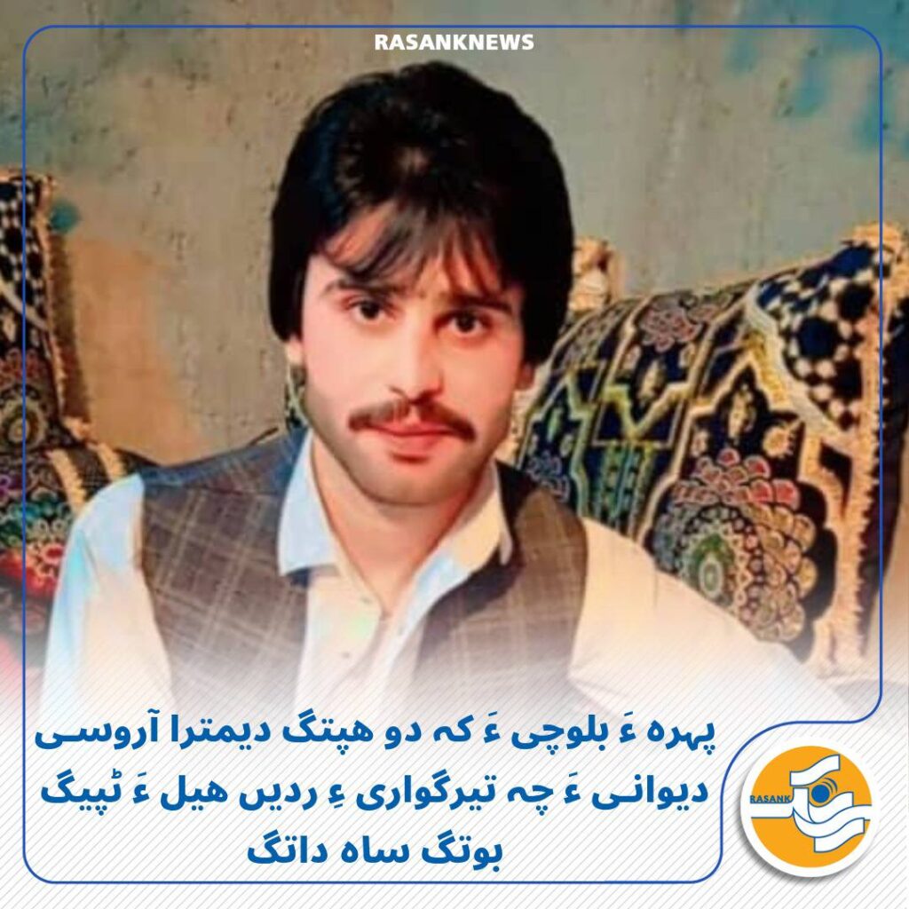 رَسانک نیوز/ جمے 9 آبان ماہ 1404 ءَ، پہرہ ءِ کارگر روڈ ءَ ورنائیں بلوچے کہ ماں تاریک 25 مہر ماہ ءَ آروسی دیوانے ءَ چہ نازانتی ءَ تیر وارتگ ءُ کُما ءَ شُتگ دو ھپتگ ءَ پد ساھے داتگ.