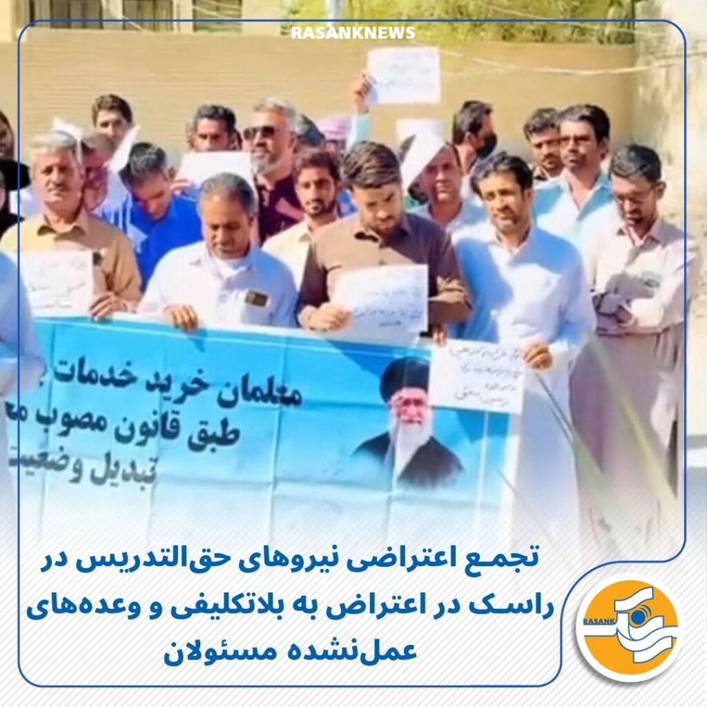 به گزارش رسانک، امروز چهارشنبه ۱۴ آبان ماه ۱۴۰۴، جمعی از نیروهای حقالتدریس شهرستان راسک در مقابل ساختمان مدیریت آموزشوپرورش این شهرستان دست به تجمع اعتراضی زدند. این تجمع در اعتراض به بیش از ۱۱ سال بلاتکلیفی شغلی، عدم پرداخت حقوق معوقه، نداشتن بیمه و بیتوجهی مسئولان نسبت به وعدههای دادهشده برگزار شد. معترضان با در دست داشتن پلاکاردهایی، عملکرد وزارت آموزشوپرورش و سازمان برنامهوبودجه را «غیرقانونی و خلاف وعدههای پیشین» توصیف کردند.