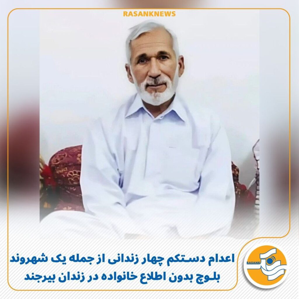 به گزارش رسانک، سحرگاه امروز دوشنبه ۱۹ آبان ماه ۱۴۰۴، حکم اعدام دستکم چهار زندانی از جمله یک شهروند بلوچ، بدون اطلاع خانواده و بدون اجازه دیدار آخر در زندان بیرجند به اجرا درآمد.