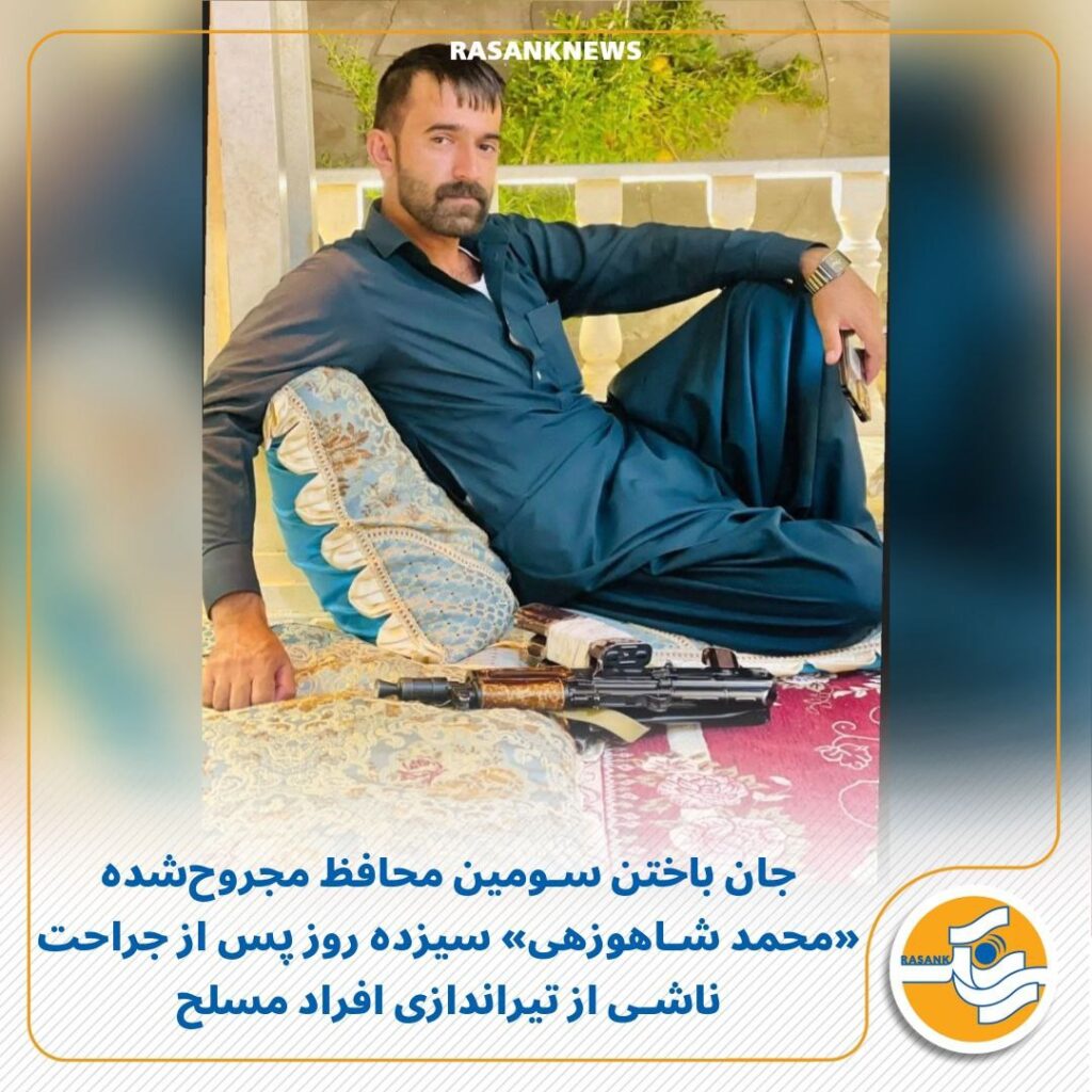 به گزارش رسانک، امروز چهارشنبه ۲۱ آبان ماه ۱۴۰۴، سومین نفر از محافظان مجروحشده در تیراندازی افراد مسلح ناشناس به سمت خودروی حامل «محمد شاهوزهی»، از فرماندهان بومی و از اعضای نهادهای امنیتی که شامگاه پنجشنبه ۸ آبان ماه در محور دهپابید به اسکلآباد از توابع شهرستان خاش رخ داد، سیزده روز پس از حادثه در بیمارستان جان باخت.
