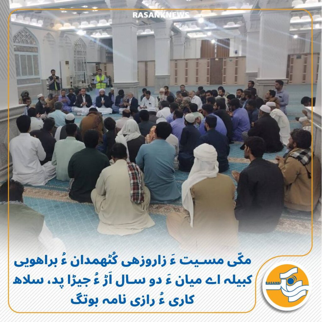 رَسانک نیوز/ زی دوشمبے 26 آبان ماہ 1404 ءَ، نارویی کبیلہ اے زاروزھی کُٹھمدان ءُ براھویی کبیلہ ئے میان ءَ دو سال جیڑہ ءُ ٹکّر ؤ دو مردمانی ٹپیگ بوھگ ءَ پد، گوں اسپیت ریشیں مردمانے میانجی گری ءُ با بہروسہ ایں بلوچانے جُھد ءَ مکی مسیت ءَ رازی نامہ ءُ سلاھ کاری بوتگ.