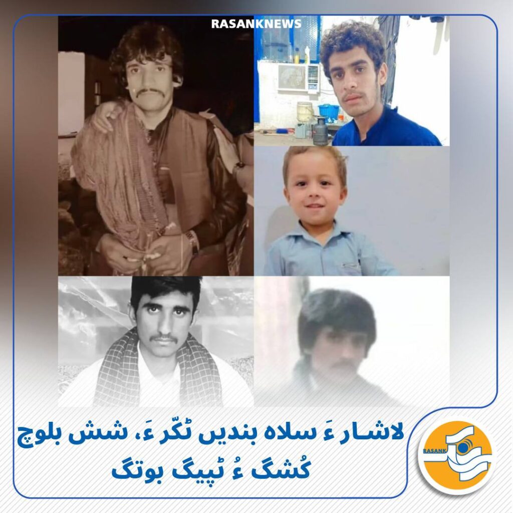 کُشگ بوتگیں مردمانی پجّار «مسلم سھویی (سردارزھی)»، «مھمد سھویی (سردارزھی)»، ھر دو برات ءُ دُرمھمد ءِ چُک ءُ بُندر ءَ کتیاب دمگ ءِ نندوک ءُ «مھمد جاوشیری»، ھُدادات ئے چُکّ، بُندر ءَ سول دمگ ءِ نندوک، «امین»، رمشک دمگ ءِ نندوک۔ ٹپیگ بوتگیں دوئیں بلوچانے پجّار «مسلم درزادہ»، 5 سالگ، اسلم ئے چک ءُ آئی ءِ ناکو «ابراھیم درزادہ»، پیرمھمد ئے چُکّ ھر دو لاشار ءِ اھمدآباد دمگ ءِ نندوک زانگ بوتگ اَنت.