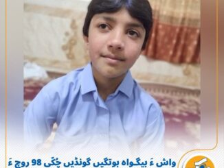 واش ءَ بیگواہ بوتگیں گونڈیں چُکّی 98 روچ ءَ پد، داں انگت بے ھالے سرپدئے اِنت