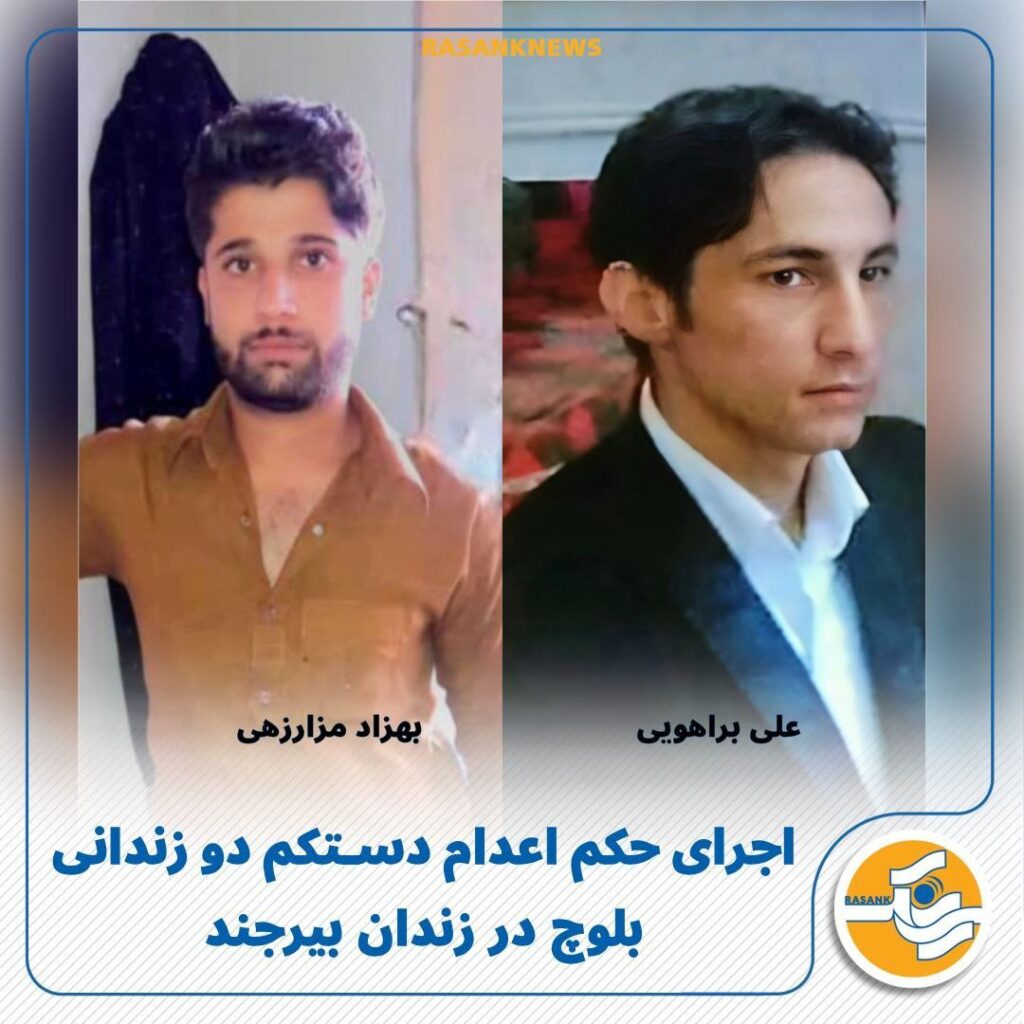 هویت دو زندانی بلوچ اعدام شده، «علی براهویی»، ۳۶ ساله، فرزند حبیب، متأهل و دارای فرزند و «بهزاد مزارزهی»، ۳۰ ساله، فرزند نعمتالله، متأهل و دارای دو فرزند، هر دو اهل مشهد عنوان شده است.