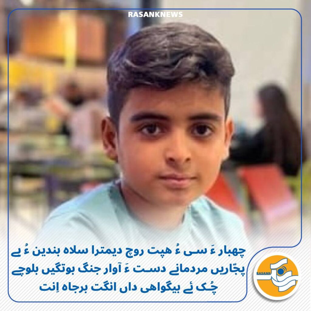 رَسانک ءَ اے بلوچے چُکّئے پجّار «مزمّل بلوچ»، 10 سالگ، مھسن ئے چُک، بُندر ءَ چھبار ئے نندوک زانتگ.