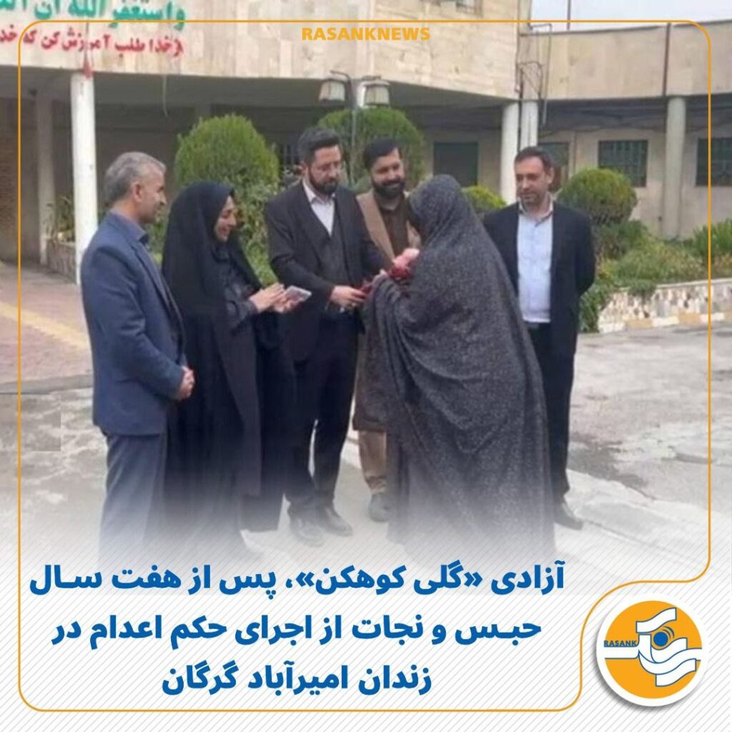 بر اساس گزارش رسانههای حکومتی، حیدر آسیابی رئیس کل دادگستری گلستان تصریح کرده: «گلی کوهکن، محکومی که چند روز پیش با گذشت اولیای دم از قصاص نجات یافته بود، امروز همزمان با روز مادر با حکم دادگاه کیفری یک گرگان از زندان آزاد شد.»