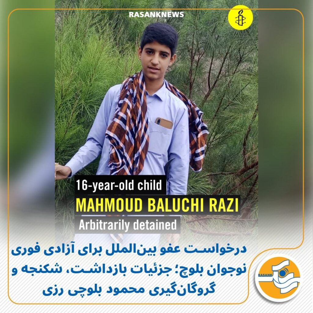 این نهاد حقوق بشری همچنین اعلام کرده که محمود بلوچی رزی در حال حاضر در کانون اصلاح و تربیت استان کرمان، در فاصلهای حدود ۸۰۰ کیلومتری از محل سکونت خانوادهاش، نگهداری میشود؛ موضوعی که خود مصداق فشار مضاعف روانی بر این کودک و خانواده اوست. عفو بینالملل بازداشت محمود را نمونه آشکار گروگانگیری، نقض جدی حقوق کودک و تخلف فاحش از تعهدات بینالمللی جمهوری اسلامی ایران، از جمله کنوانسیون حقوق کودک، دانسته و مسئولیت کامل هرگونه آسیب جسمی و روانی را متوجه نهادهای امنیتی و قضایی کرده است.