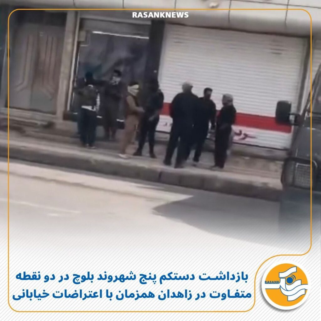 به گزارش رسانک، امروز جمعه ۱۲ دیماه ۱۴۰۴، پس از آنکه شهروندان زاهدان در اعتراض به وضعیت نابسامان اقتصادی، سقوط ارزش پول ایران و در همراهی با اعتراضات سایر مناطق کشور به خیابانها آمدند و علیه حکومت دست به اعتراض زدند، نیروهای لباسشخصی اقدام به بازداشت دستکم سه شهروند بلوچ در خیابان مزاری و دو نفر را در خیابان امیرالمؤمنین، حدفاصل بازار سرپوشیده این شهر کردند.