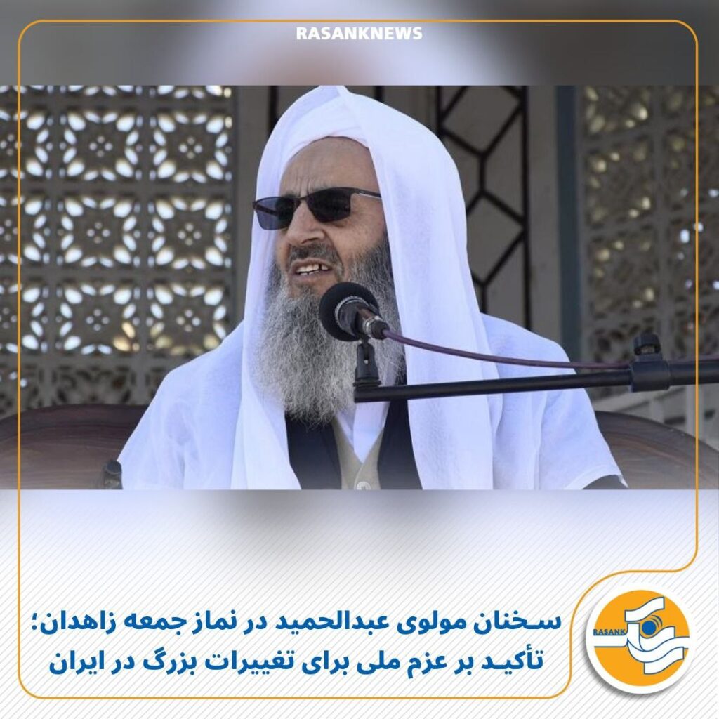 به گزارش رسانک، امروز جمعه ۱۹ دیماه ۱۴۰۴، همزمان با برگزاری نماز جمعه زاهدان، مولوی عبدالحمید اسماعیلزهی، امامجمعه زاهدان با اشاره به اعتراضات سراسری و خیزش اخیر مردم ایران، اعلام کرد که مردم ایران با حضور گسترده خود در خیابانها، خواهان ایجاد تغییرات بزرگ و بنیادین در کشور است. وی با توصیف شرایط کنونی بهعنوان بنبست کامل سیاسی و اقتصادی، گفت مردم از وضعیت معیشتی، فساد گسترده و بیتوجهی مسئولان به هشدارهای دلسوزانه به ستوه آمدهاند و اکنون با وحدت و ارادهای جمعی برای تغییر به صحنه آمدهاند.