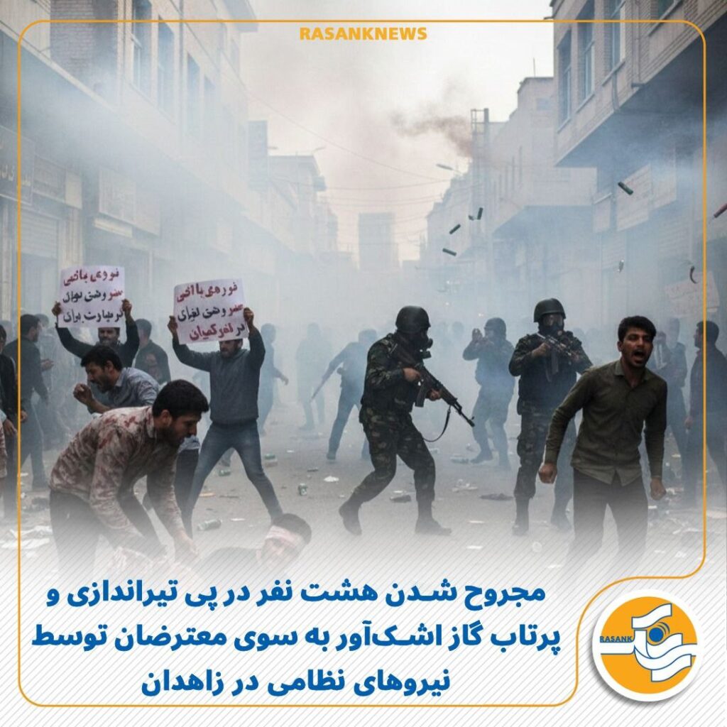 به گزارش رسانک، امروز جمعه ۱۹ دی‌ماه ۱۴۰۴، پس از اقامه نماز جمعه در شهر زاهدان، نیروهای نظامی با تیراندازی و پرتاب گسترده گاز اشک‌آور به سمت شهروندان بلوچ، اقدام به سرکوب معترضان کردند که در نتیجه آن دستکم هشت نفر بر اثر اصابت گلوله ساچمه‌ای مجروح شدند.