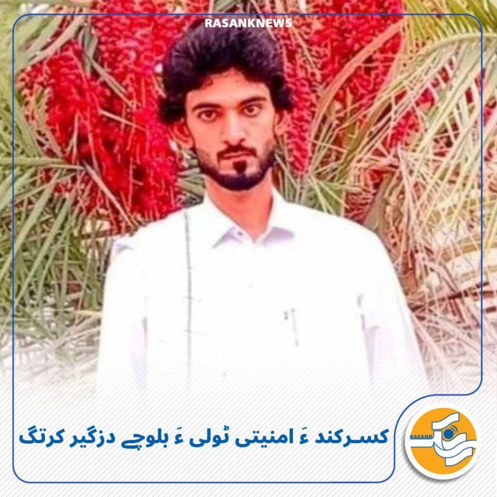 اے بلوچئے پجّار «ابدلناسر بلوچ کادر»، 22 سالگ، ازیم ئے چُک، بُندر ءَ کسرکند ئے کارچان دمگئے نندوکیں مردمی زانگ بوتگ.