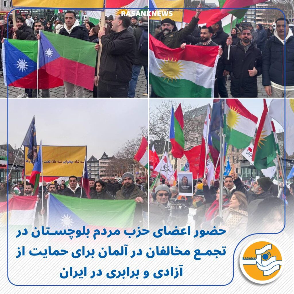 حضور اعضای حزب مردم بلوچستان در تجمع مخالفان در آلمان برای حمایت از آزادی و برابری در ایران