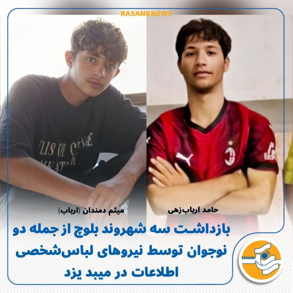 به گزارش رسانک، روز سهشنبه ۳۰ دیماه ۱۴۰۴، سه شهروند بلوچ که دو تن از آنها نوجوان و زیر هجده سال هستند، توسط نیروهای لباس شخصی اداره اطلاعات در حین اعتراضات سراسری در شهر میبد استان یزد بازداشت شده و با گذشت ده روز همچنان در بازداشت به سر میبرند.