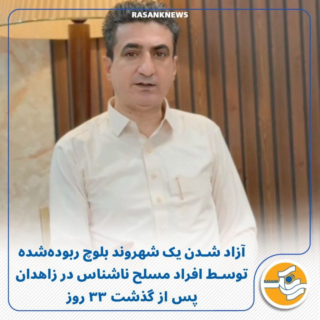 به گزارش رسانک، شامگاه گذشته ۱۸ بهمن ماه ۱۴۰۴، یک شهروند بلوچ که شامگاه ۱۵ دی ماه، در خیابان بزرگمهر شهر زاهدان توسط افراد مسلح در اقدامی که با خشونت و تیراندازی همراه بود، ربوده شده بود، پس از گذشت ۳۳ روز آزاد شد و به آغوش خانوادهاش بازگشت.