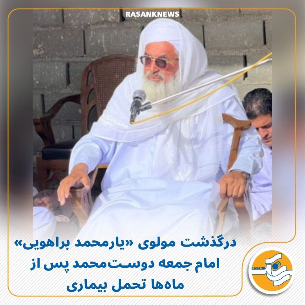 به گزارش رسانک، امروز چهارشنبه ۲۲ بهمنماه ۱۴۰۴، مولوی «یارمحمد براهویی» امام جمعه شهر دوستمحمد مرکز شهرستان هیرمند، پس از ماهها تحمل بیماری و در حالی که برای درمان و انجام عمل جراحی قلب به تهران منتقل شده بود، در یکی از بیمارستانهای این شهر درگذشت.