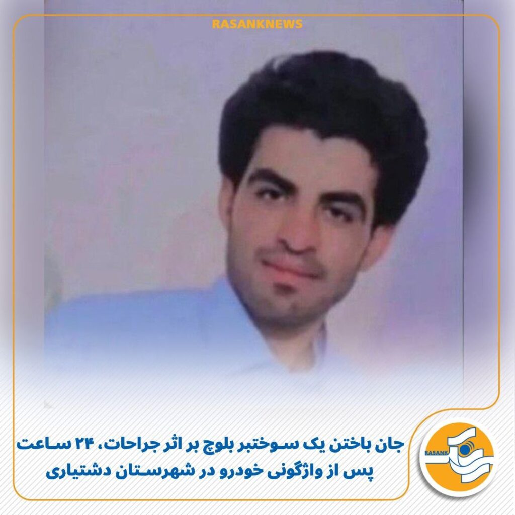 به گزارش رسانک، شامگاه گذشته ۲۳ بهمن‌ماه ۱۴۰۴، یک سوختبر بلوچ که روز چهارشنبه ۲۲ بهمن‌ماه در پی واژگونی خودروی خود در محدوده روستای کرگی از توابع شهرستان دشتیاری دچار سوختگی شدید شده بود، پس از حدود ۲۴ ساعت بستری در بیمارستان امام علی چابهار بر اثر شدت جراحات جان خود را از دست داد.