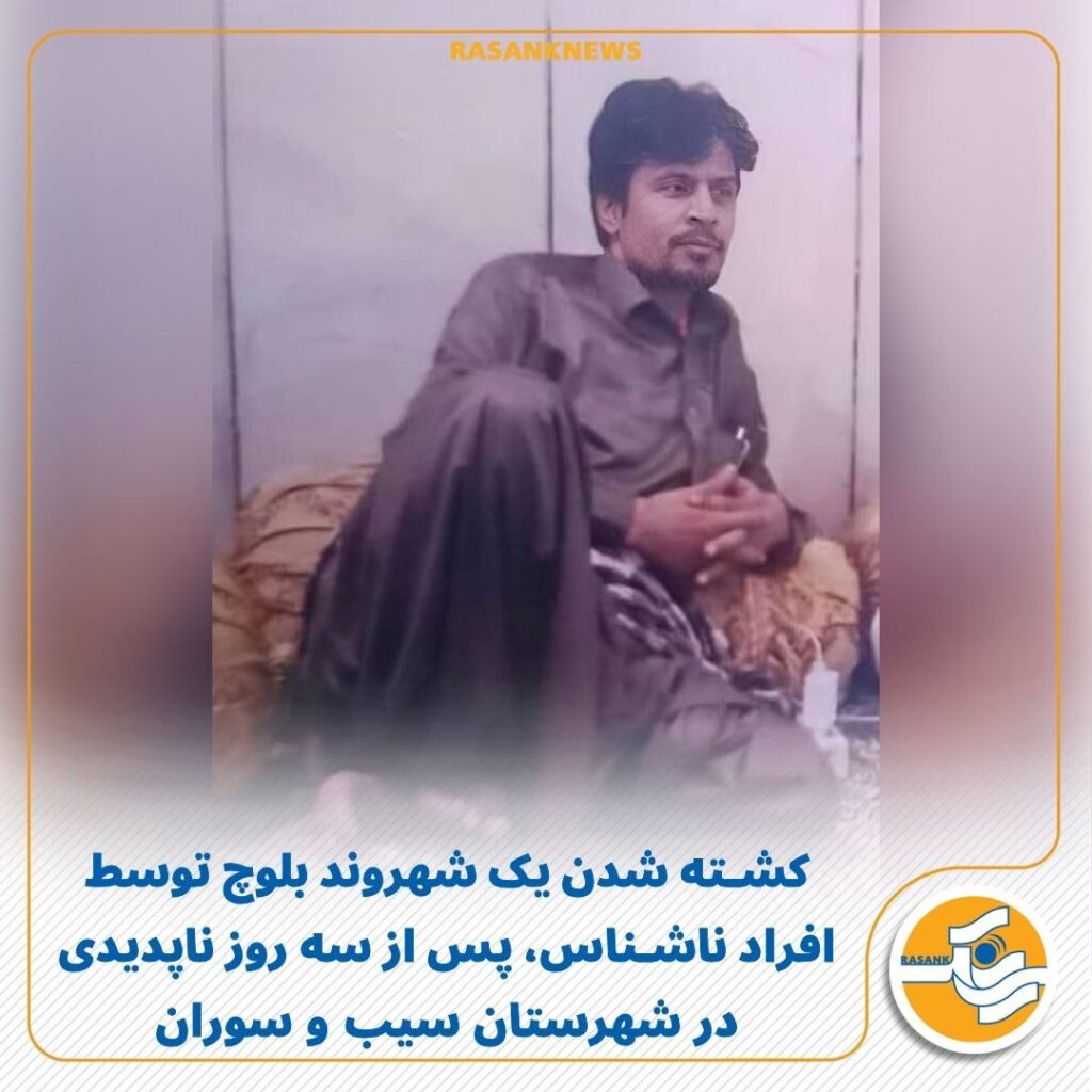 به گزارش رسانک، روز گذشته ۲۳ بهمنماه ۱۴۰۴، پیکر یک شهروند بلوچ که از روز ۲۰ بهمنماه در شهرستان سیب و سوران به شکل مشکوکی مفقود شده بود، پس از سه روز جستوجو توسط مردم محلی در حالی پیدا شد که با اصابت گلوله از سوی افراد مسلح ناشناس جان خود را از دست داده است.