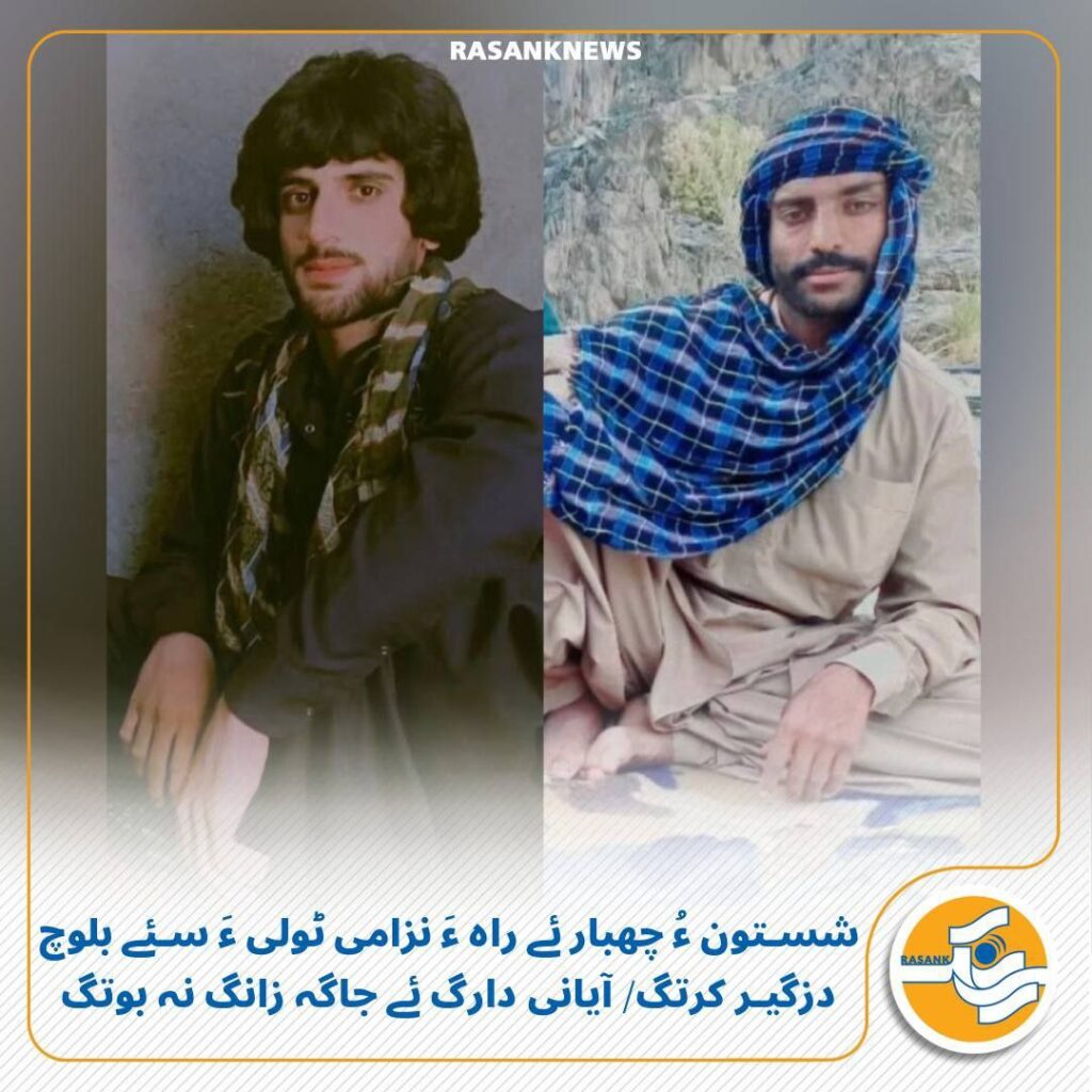رَسانک نیوز/ جمے روچ 24 بہمن ماہ 1404، سئے بلوچ کہ چہ شستون ءَ دیم پہ چھبار ءَ روگ ءَ بوتگ اَنت، نزامی ٹولی ءَ دزگیر کرتگ اَنت ءُ آیانی سرنبشت ءُ دارگ ئے جاگہ داں انگت ءَ زانگ نہ بوتگ.