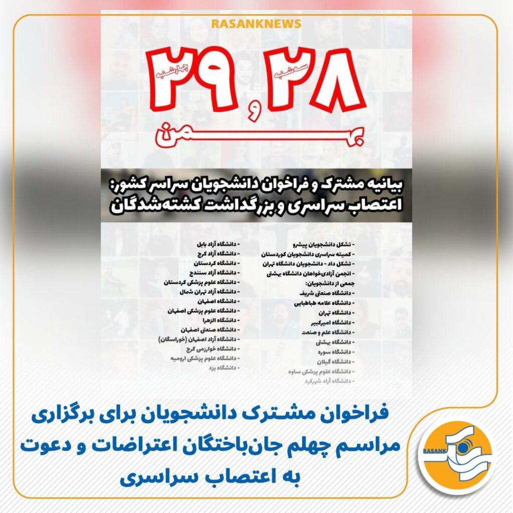فراخوان مشترک دانشجویان برای برگزاری مراسم چهلم جان‌باختگان اعتراضات و دعوت به اعتصاب سراسری