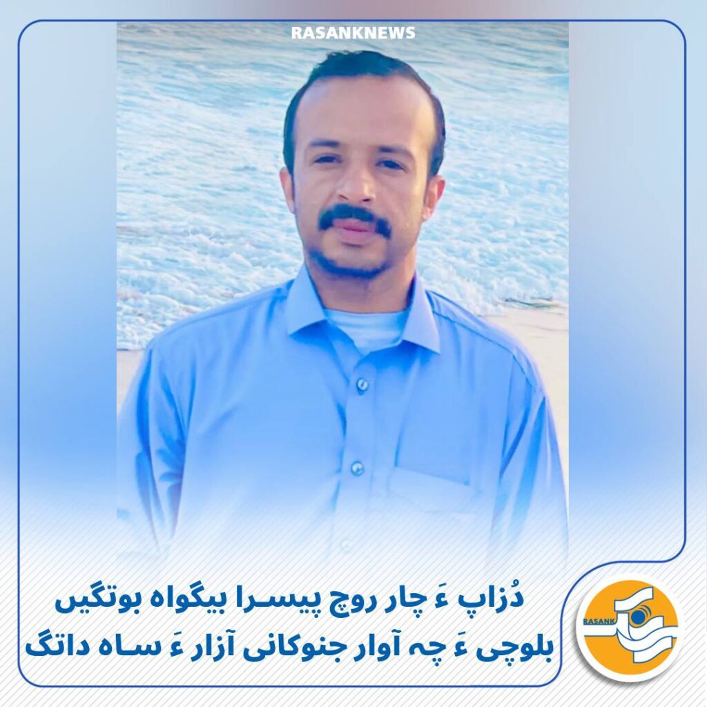 رَسانک نیوز/ چارشمبے 29 بہمن ماہ 1404، بلوچی کہ ماں تاریک 22 بہمن ماہ ءَ سلاہ بندیں مردمان ءَ چہ دُزاپ ءِ مزاری روڈ ءَ آوار جتگ، چار روچ آزار ءُ لٹ شاپ ءَ رَند ماں 26 بہمن ماہ ءَ دُزاپ ءِ نادارہجاہی ئے یلاک دیگ بوتگ۔ چہ ٹپّانی باز بوھگ، گُٹّگانے کار ءَ کپگ ءُ تَہی ٹپّ ءُ ٹوران ءَ ساھی داتگ.