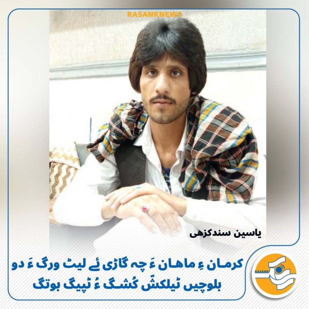 ساہ داتگیں ٹیلکشّئے پجّار «یاسین سندکزھی»، کِساس 20 سالگ، یاکوب ئے چُک، ٹپیگ بوتگیں ٹیلکشّئے پجّار «اسلم اُمرزھی»، ھر دو پہرہ ئے نندوکیں مردم زانگ بوتگ اَنت.