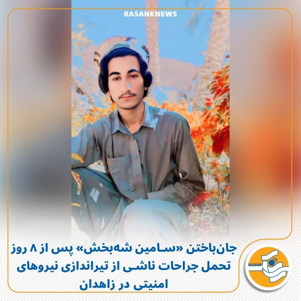 جان‌باختن «سامین شه‌بخش» پس از ۸ روز تحمل جراحات ناشی از تیراندازی نیروهای امنیتی در زاهدان
