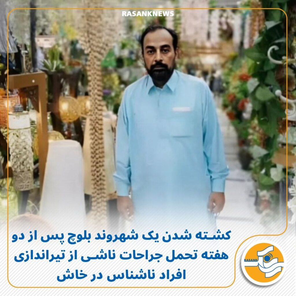 کشته شدن یک شهروند بلوچ پس از دو هفته تحمل جراحات ناشی از تیراندازی افراد ناشناس در خاش