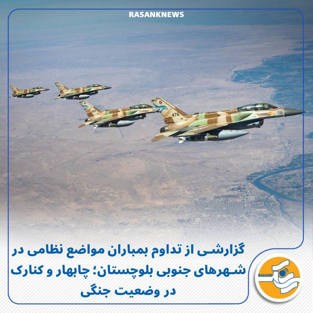 یکی از منابع محلی که امروز حوالی ساعت ۱۶ در سطح شهر چابهار حضور داشته، به رسانک گفته است که جنگندهها بهوضوح در آسمان شهر در حال پرواز و گشتزنی بودهاند و پس از چند دور چرخیدن ناگهان صدای انفجارها شنیده شده است. به گفته این منبع، در روزهای اخیر ارتفاع پرواز جنگندهها پایینتر از گذشته بوده و صدای آنها نیز بهمراتب رساتر شنیده میشود. همچنین منابع از شنیده شدن صدای انفجار در شامگاه گذشته حوالی ساعت ۱۹ در محدوده ساحل کنارک و زرآباد خبر دادهاند؛ بهویژه در نزدیکی تأسیسات دریابانی و سپاه در ساحل زرآباد و اطراف اسکلههایی موسوم به «اسکلههای کور» که خارج از دسترس عموم قرار دارند. منابع رسانک میگویند این اسکلهها عمدتاً برای فعالیتهای قاچاق وابسته به سپاه از جمله جابهجایی تسلیحات، مواد مخدر و کالاهای قاچاق و حتی خودروهای گرانقیمت بدون پرداخت عوارض گمرکی مورد استفاده قرار میگرفتند.