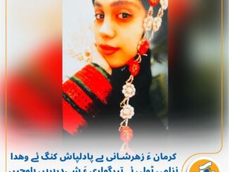 رَسانک نیوز / مروچی جمه 10 بہمن ماہ 1404 ءَ، کرمان ءِ شہر ءَ جمے روچ 19 دی ماہ ءِ بیگاہ ءَ مهلوکئے زھرشانی ئے پادلپاش کنگئے وھدا نزامی ٹولی …..ادامه خبر